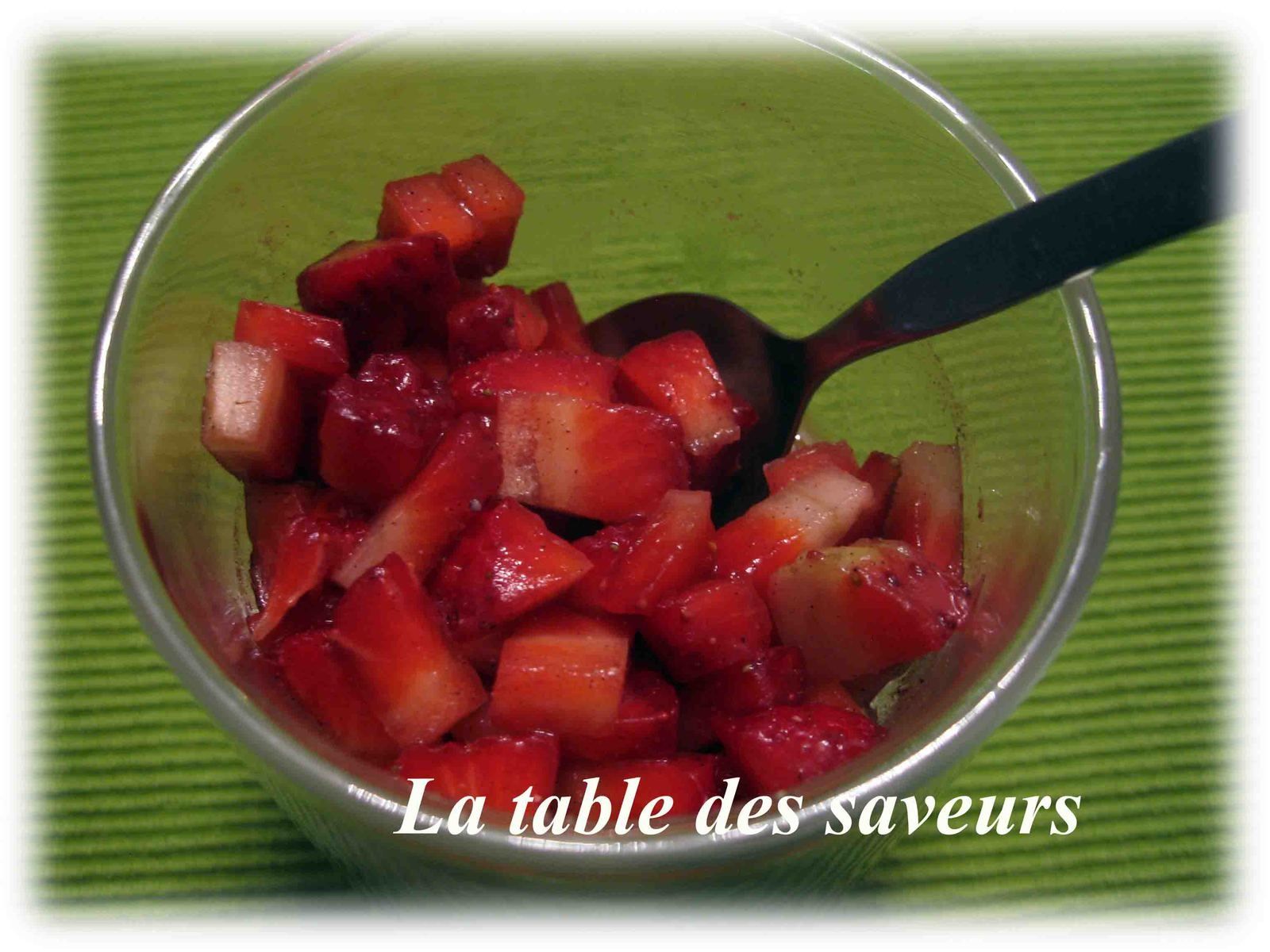 Pour le dessert, j'ai continué dans la ligne du simple, léger et rapide avec quelques fraises coupés en petits dés et macérées pendant demi heure dans du sucre, de la poudre de cardamome et du whisky.
